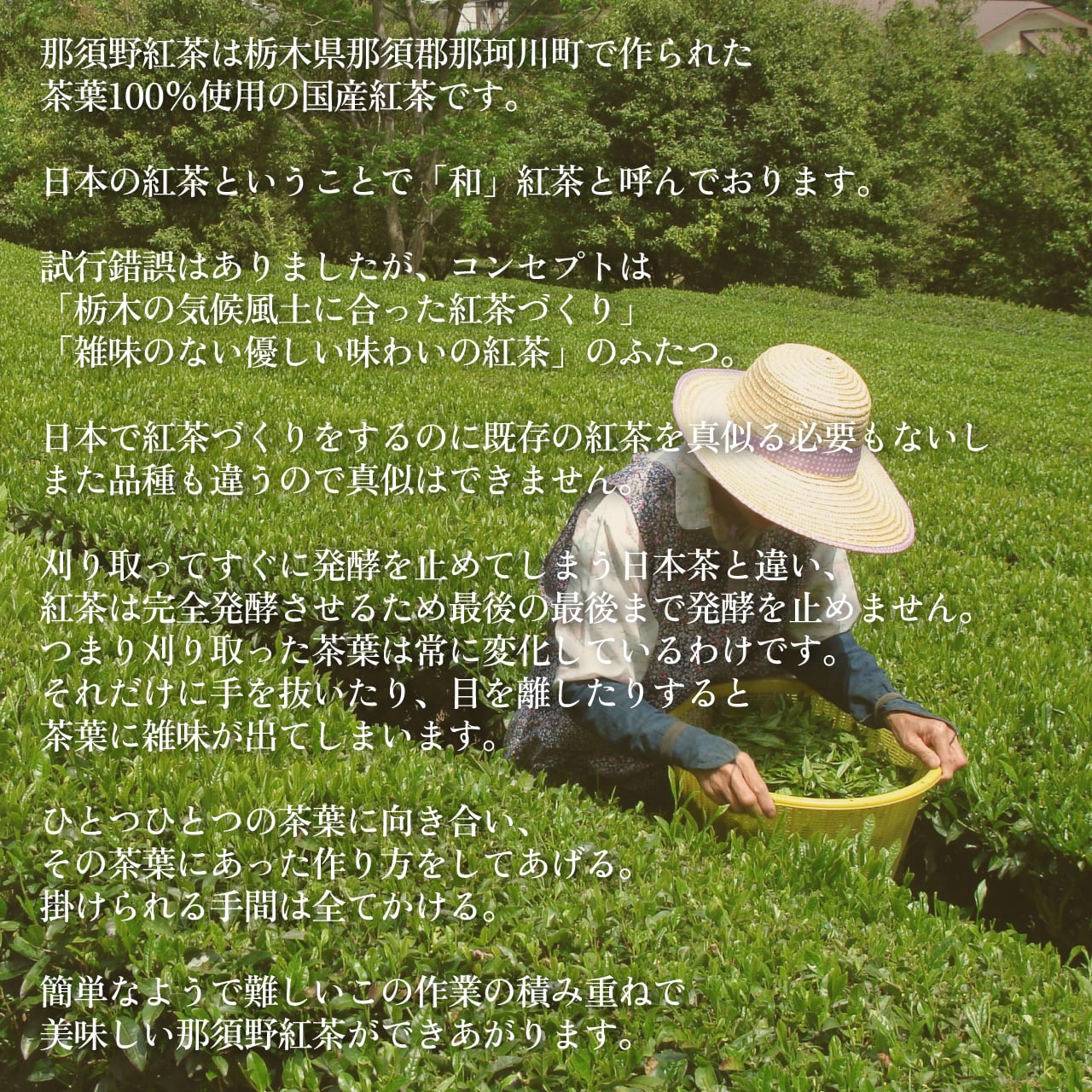 栃木県産茶葉100%の和紅茶、那須野紅茶を美味しさそのままにティーバッグに詰めました。優しく穏やかな味わいです。